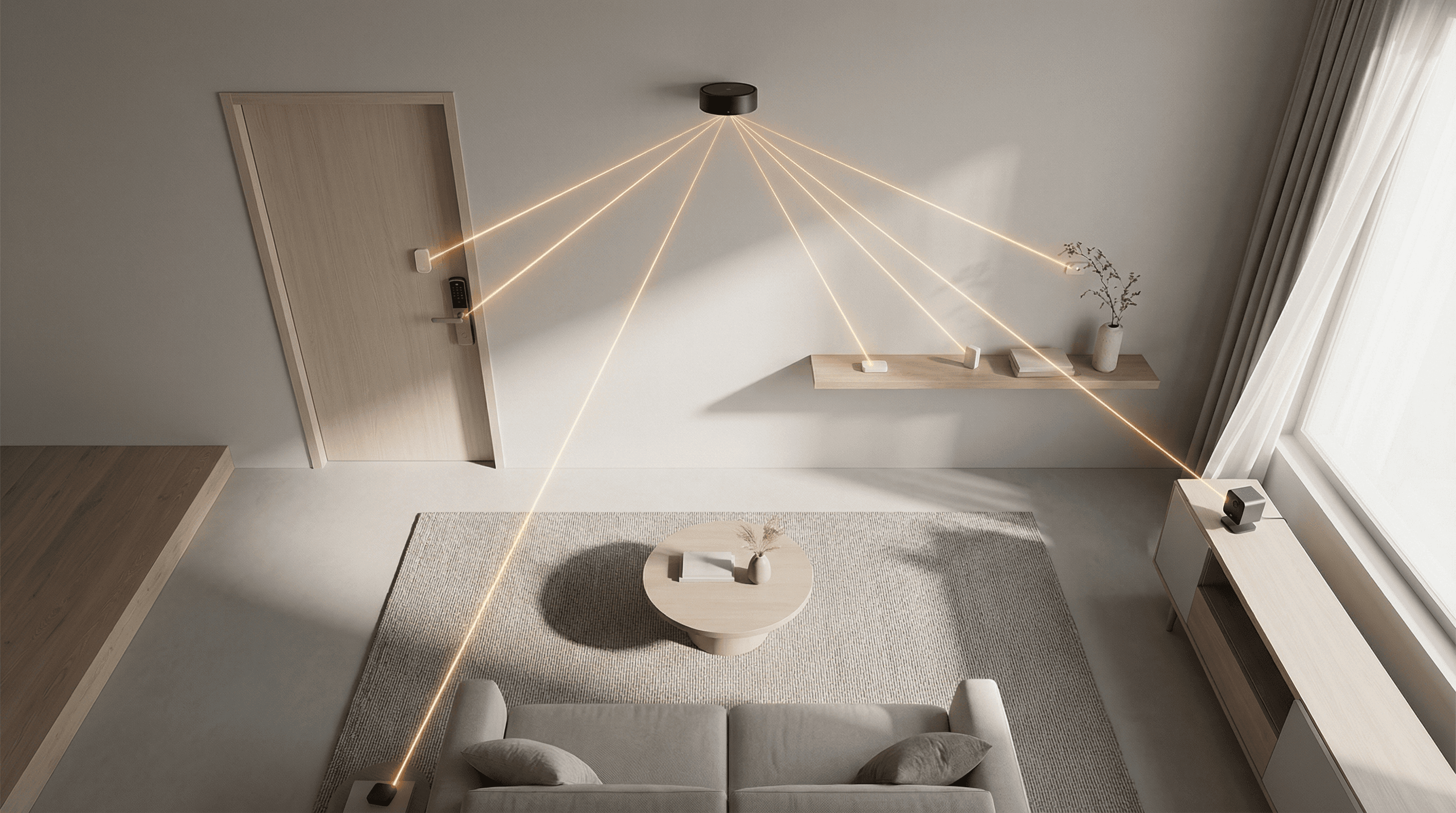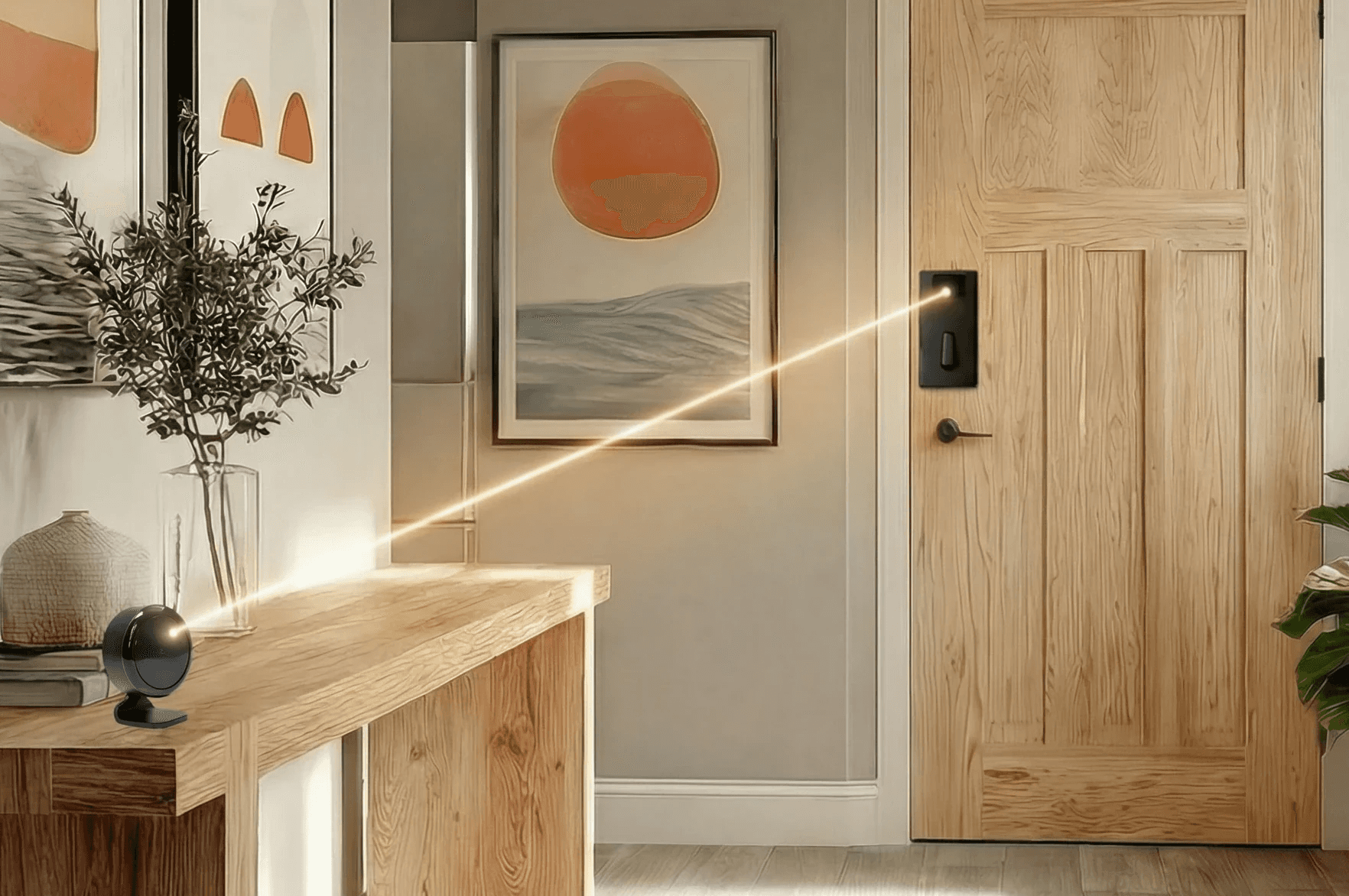 Safe, directed infrared light transmits power across the room. Invisible to the eye. Safe for everyone.